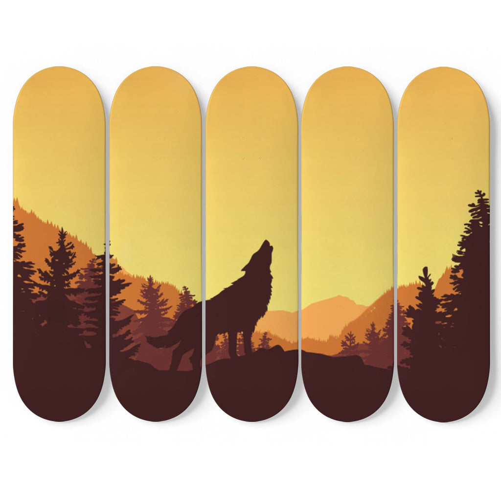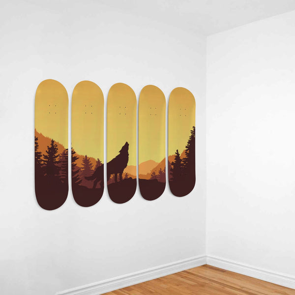 This set of 5 high-quality 7-ply 100% maple skateboards are the perfect statement piece for any home or office. Custom printed graphics, one-of-a-kind art piece.